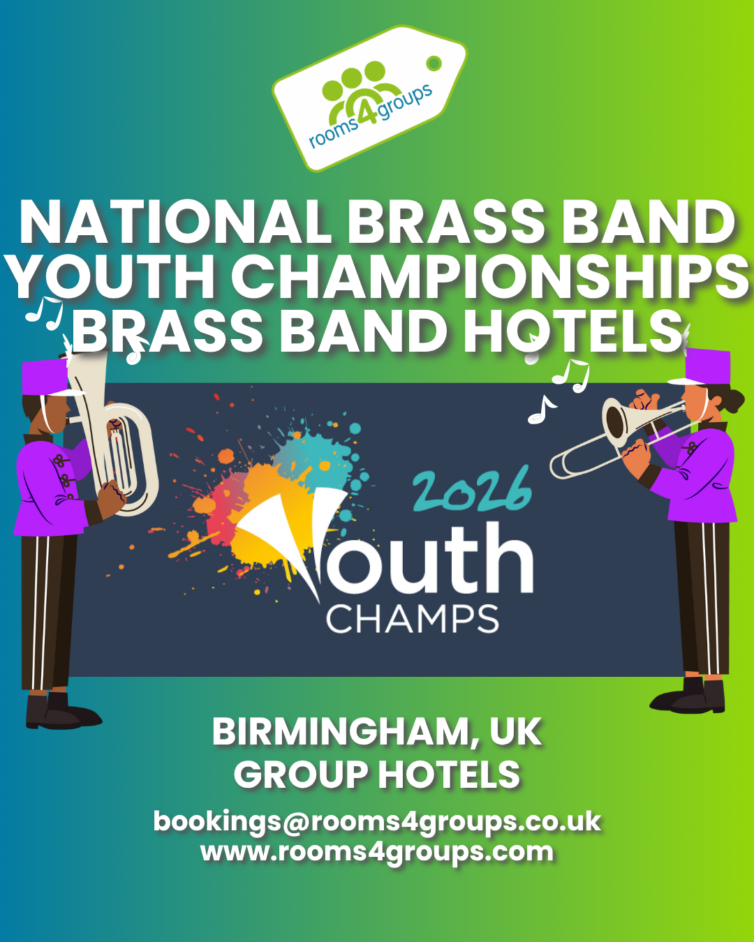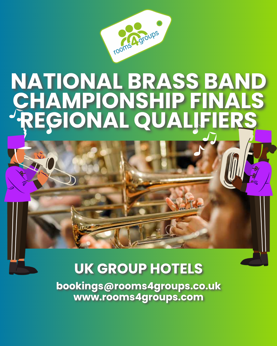 rooms4groups is proud to support brass bands participating in prestigious championships throughout the upcoming season, including: